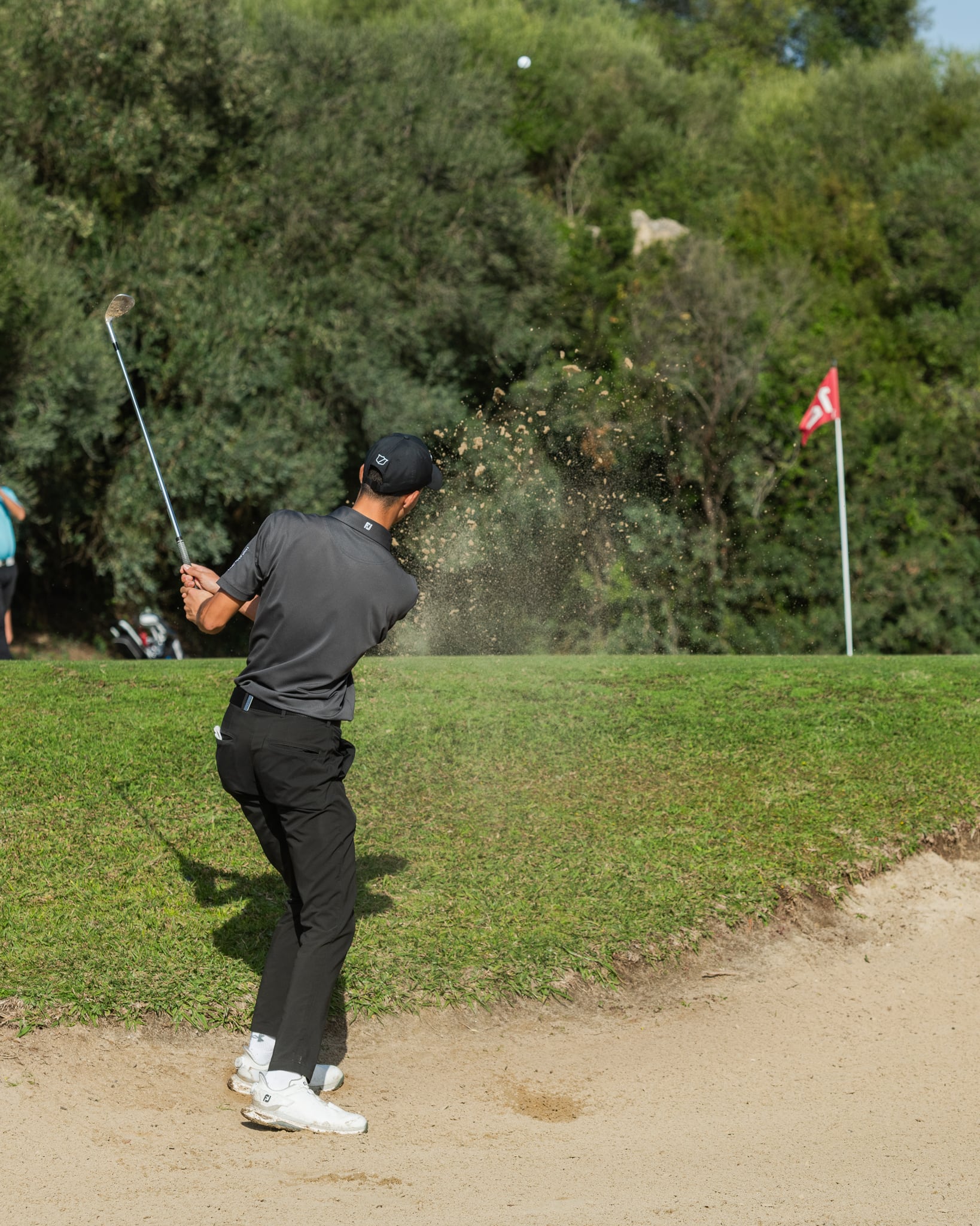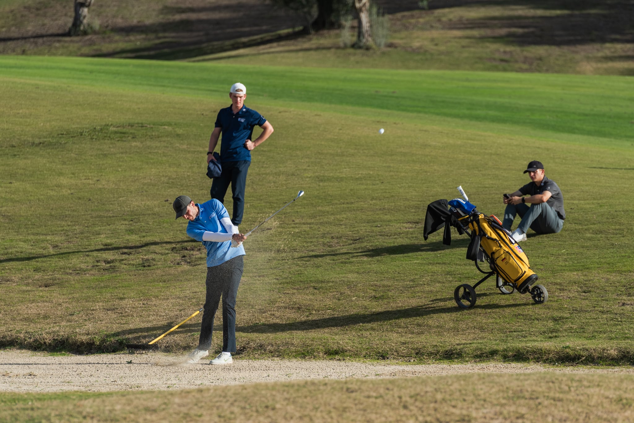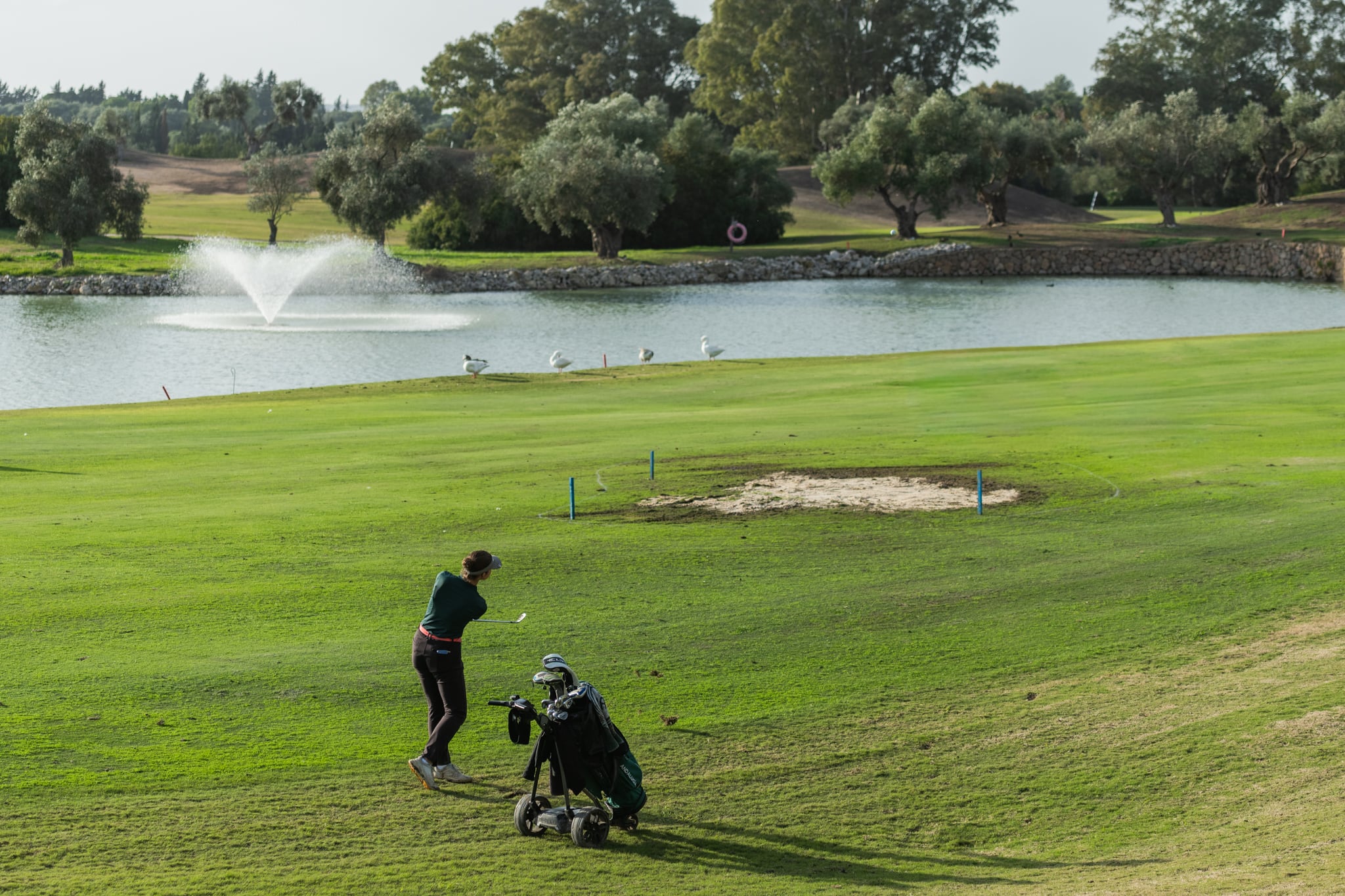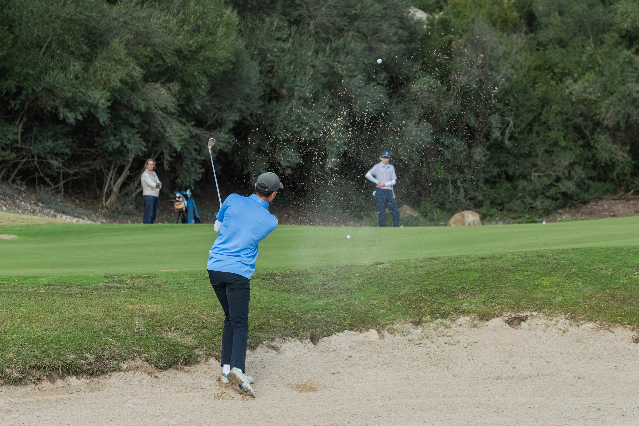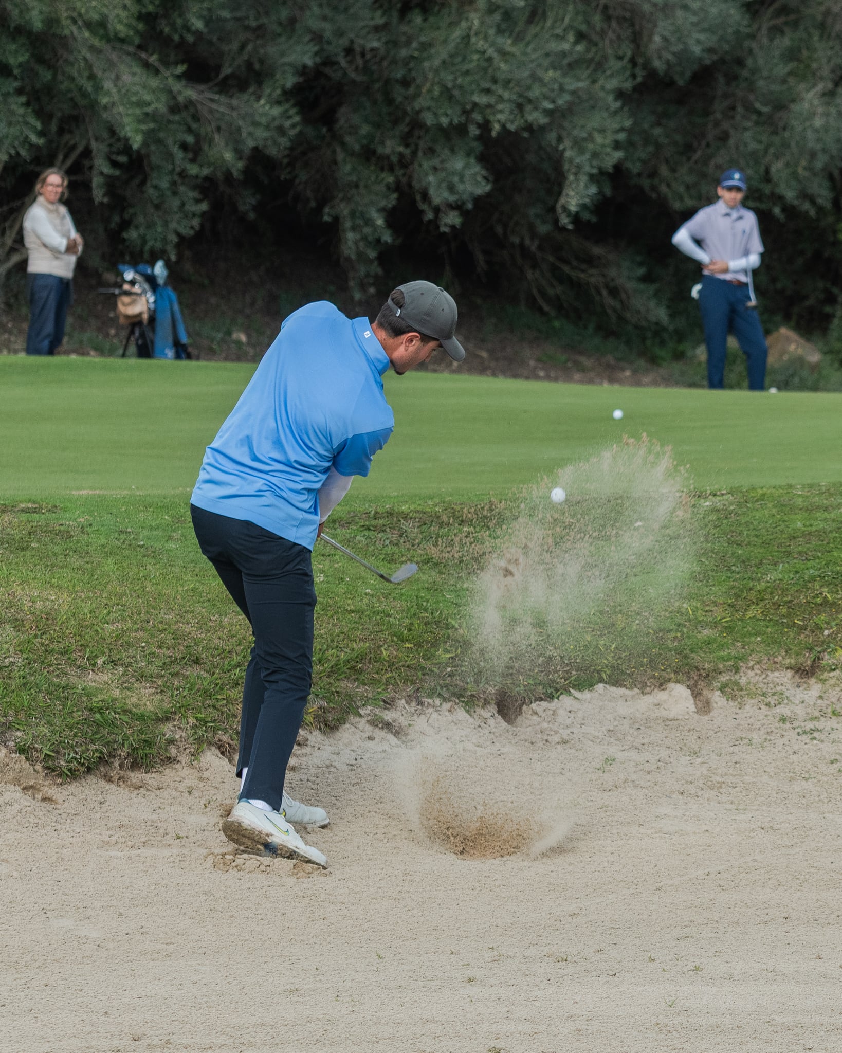 El sábado, una ligera lluvia acompañó a los participantes durante las primeras horas de la jornada, pero una vez que dejó de llover, la ausencia de aire y el aumento de temperatura hicieron que se quedara una jornada extraordinaria para la práctica del golf.